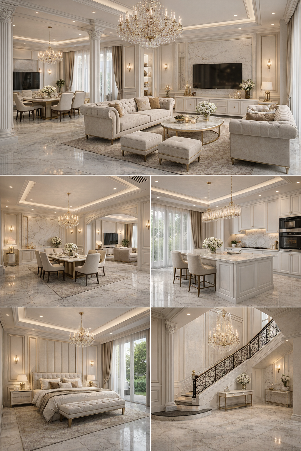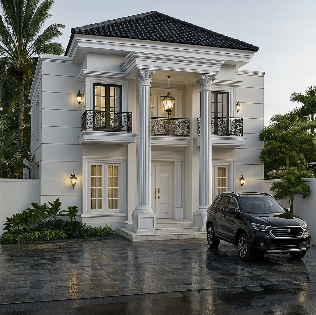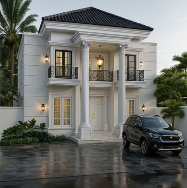 Hunian ini berkonsep High-End Classic Meditrania yang memancarkan kemegahan luar biasa melalui detail arsitektur yang presisi. Desain ini dirancang khusus untuk mendambakan rumah dengan karakter kuat, mewah, dan memiliki nilai seni yang tak lekang oleh waktu (timeless beauty).