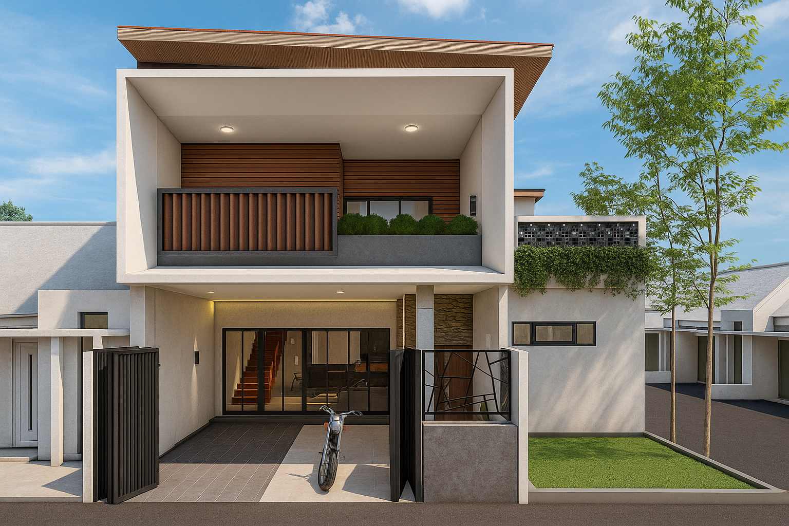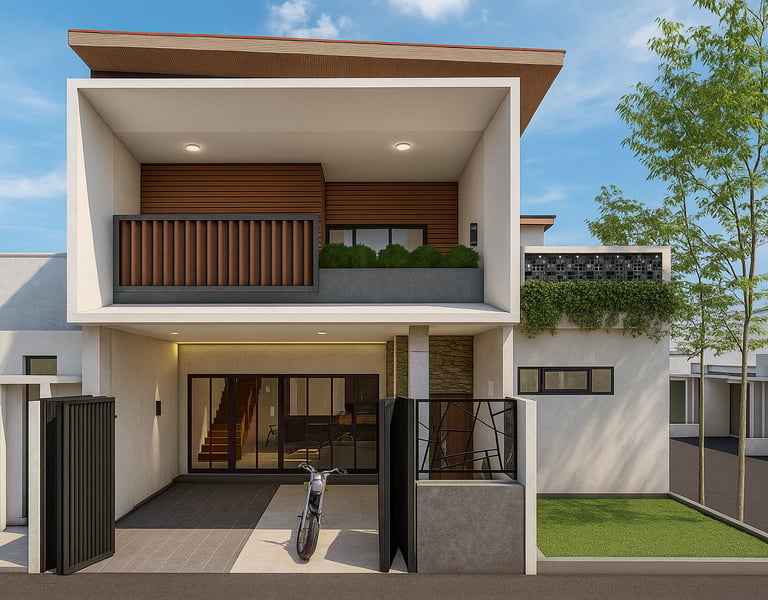Di balik hiruk-pikuk kehidupan urban, rumah ini hadir sebagai oase ketenangan yang memadukan efisiensi desain dengan kelembutan elemen alam. Mengusung tema Urban Zen, setiap sudut fasadnya dirancang untuk memberikan kesan tenang, tertata, dan prestisius.